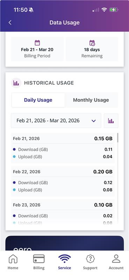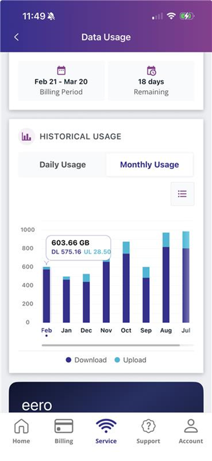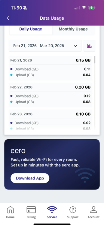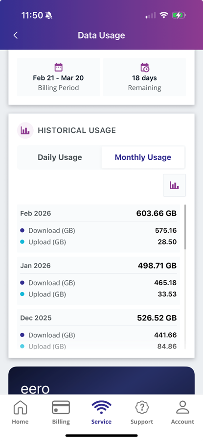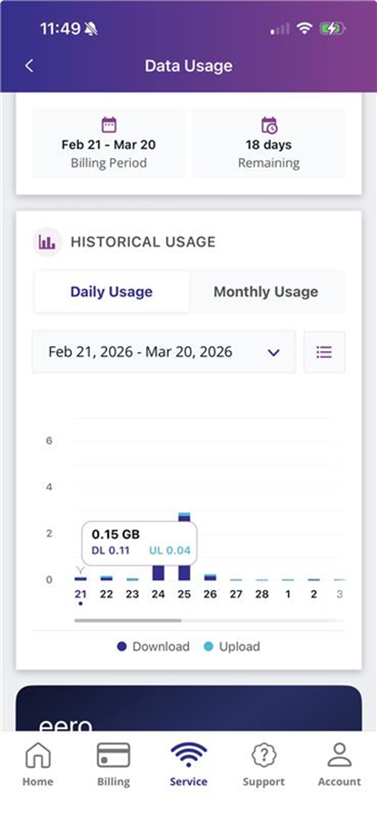 The eero banner does not impact your data usage, billing, or service details. Availability may vary by account and service plan.